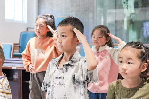 教學(xué)過程中,實(shí)踐隊(duì)員陳麒羽將復(fù)雜的舞蹈動(dòng)作分解為清晰易懂的小節(jié),耐心細(xì)致地指導(dǎo)每一個(gè)步伐、每一次轉(zhuǎn)身、每一個(gè)手勢。從基礎(chǔ)的手臂擺動(dòng)、腳步移動(dòng),到富有表現(xiàn)力的表情配合,老師不僅強(qiáng)調(diào)動(dòng)作的標(biāo)準(zhǔn)性,更鼓勵(lì)孩子們大膽表達(dá)自我,享受音樂與舞蹈帶來的純粹快樂。教室里,孩子們專注模仿,積極練習(xí),小小的身體隨著音樂的節(jié)拍盡情搖擺,汗水伴隨著笑聲流淌,青春的活力在舞動(dòng)中盡情綻放。