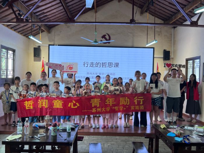 為把抗戰(zhàn)精神種進(jìn)童心,讓哲學(xué)思考扎根田野,2025年7月10日,蘇州大學(xué)“哲學(xué)+”實(shí)踐團(tuán)深入?yún)墙瓍^(qū)震澤鎮(zhèn)金星村、齊心村、眾安橋村開展實(shí)踐活動(dòng),活動(dòng)旨在紀(jì)念抗日戰(zhàn)爭勝利暨世界反法西斯戰(zhàn)爭勝利80周年,帶領(lǐng)當(dāng)?shù)匦∨笥褜W(xué)習(xí)抗戰(zhàn)歷史,培養(yǎng)家國情懷與思辨精神;調(diào)研新農(nóng)村發(fā)展現(xiàn)狀,看當(dāng)?shù)厝绾卧?ldquo;守正”與“創(chuàng)新”之間覓尋一條“文化傳承與產(chǎn)業(yè)振興”互融共生的特色發(fā)展之路。