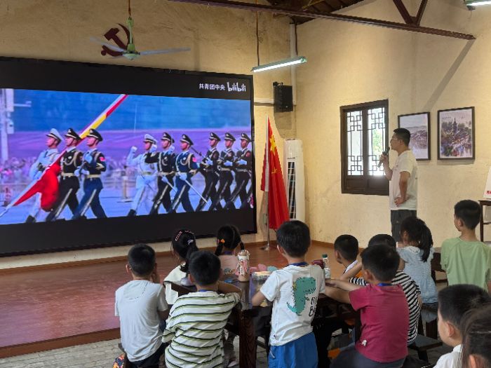 隨后,實(shí)踐團(tuán)前往金星村黨建小院以別開生面的互動(dòng)哲思課為媒,帶領(lǐng)當(dāng)?shù)貎和販乜箲?zhàn)歷史?;顒?dòng)采用“誦讀+觀影+思辨”的創(chuàng)新模式,通過互動(dòng)對(duì)話的特色形式激發(fā)青少年的歷史思考。