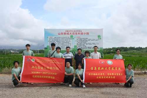 在虎山鎮(zhèn),司彤在榮成大花生科技小院開展田間課堂,指出“中國人的飯碗不僅要牢牢端在自己手里,而且我們中國人的油瓶子里要多裝中國油”,隨后從花生的生長特性、田間管理、栽培要點(diǎn)和病蟲害防治四個(gè)方面進(jìn)行講解,重點(diǎn)介紹花生種植需要與玉米等作物進(jìn)行輪作換茬,避免連作障礙,減輕病蟲草害。“中國好人”、虎山鎮(zhèn)農(nóng)業(yè)合作社理事長連建祝向?qū)嵺`團(tuán)成員介紹科技小院的基本情況,帶領(lǐng)大家前往種植基地了解夏玉米等作物種植狀況,指出夏玉米不同生育階段的葉片數(shù)量可作為田間管理的重要指標(biāo),通過深入研究各葉齡期植株的生理特性和需肥需水規(guī)律,制定差異化的肥水調(diào)控、病蟲害防治等措施,實(shí)現(xiàn)玉米產(chǎn)量與品質(zhì)的協(xié)同提升?;⑸睫r(nóng)業(yè)種植專業(yè)合作社工作人員王建情,帶領(lǐng)實(shí)踐服務(wù)團(tuán)觀看宣傳片并參觀裕農(nóng)學(xué)堂。實(shí)踐團(tuán)成員了解到虎山合作社每季度會開展生產(chǎn)技能培訓(xùn)班,通過系統(tǒng)化教學(xué)幫助農(nóng)戶掌握現(xiàn)代農(nóng)業(yè)技術(shù),提升生產(chǎn)管理水平。最后,實(shí)踐服務(wù)團(tuán)成員開展助農(nóng)直播,以實(shí)際行動助力鄉(xiāng)村振興。