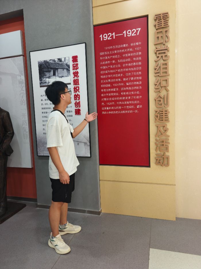 結(jié)束對英名碑的致敬后,志愿者們進入霍邱縣烈士陵園陳列館。館內(nèi),由團隊中提前做好功課的志愿者擔任講解員,為大家介紹館內(nèi)珍藏的革命文物、歷史照片和文獻資料。從銹跡斑斑的步槍到泛黃的戰(zhàn)地家書,從記錄戰(zhàn)斗歷程的地圖到展現(xiàn)先烈風貌的畫像,一件件實物、一幅幅圖片,讓志愿者們仿佛穿越到那個戰(zhàn)火紛飛的年代,真切感受到革命先烈為理想信念奮斗的堅定與執(zhí)著。