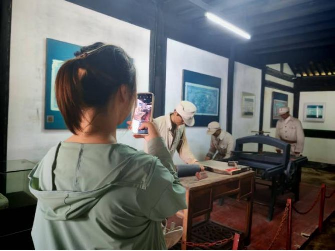 軍民魚水情,情深似海難分割。在新浙東報、浙東銀行舊址,這份血濃于水的情誼仿佛仍在空氣中縈繞,它們也無聲地見證著革命歲月里通訊手段從無到有、一步步走向成熟的歷程。那一期期油墨印刷的報紙,傳遞著勝利的號角;那一份份飽含深情的互動,凝聚著民心所向。文化的火炬,正是在這彌漫的硝煙中愈燃愈烈,最終照亮了民族復(fù)興的黎明曙光!作為“國防七子”之一、深耕電子信息領(lǐng)域的南航學(xué)子,小分隊成員在此深刻體悟軍民一心、生死與共的真諦,更堅定了深研通信核心關(guān)鍵技術(shù)、筑牢國家信息長城的決心,將立志以“電信之聲”傳遞家國情懷,以“電信之聲”報效偉大祖國!