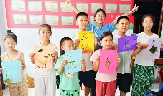 在植物學(xué)課堂環(huán)節(jié),支教隊員依托圖文展示,開展植物知識教學(xué)。講解內(nèi)容覆蓋植物各構(gòu)成部分:介紹負(fù)責(zé)從土壤吸收養(yǎng)分的根系,支撐植株形態(tài)的莖干,執(zhí)行光合作用的葉片,以及承擔(dān)孕育種子功能的花果 ,完成植物構(gòu)成要素的系統(tǒng)闡釋。教學(xué)推進(jìn)至互動環(huán)節(jié),組織孩子們分組開展接力繪畫,以協(xié)作形式共同完成葉片主題創(chuàng)作;進(jìn)入觀察環(huán)節(jié)后,引導(dǎo)學(xué)生手持葉片,對葉脈紋路進(jìn)行辨別,借助交流行為,深化其對植物特征的認(rèn)知,幫助學(xué)生建立對自然生命特點的直觀感知 。