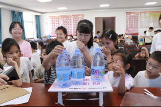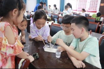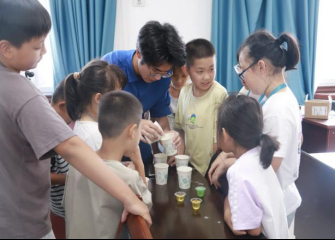 “遇強(qiáng)則強(qiáng),遇弱則弱”來形容非牛頓流體是再好不過的了,輕輕觸碰時柔軟如絲綢,用力敲打時卻堅(jiān)硬如鐵。在隊(duì)員們的指導(dǎo)下小朋友們反復(fù)實(shí)驗(yàn),小心翼翼地調(diào)配淀粉與水的比例,終于找到了最佳配比。他們將調(diào)配好的非牛頓流體倒入容器中,向周圍同學(xué)一起分享成功的喜悅,一起感受科學(xué)的魅力。