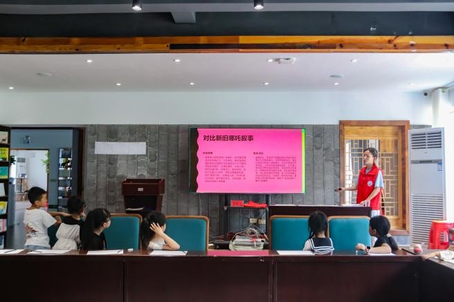 為了進一步加深孩子們對電影人物的理解,趙雪老師邀請孩子們上臺表演電影中的經(jīng)典場景。孩子們分組合作,模仿哪吒和其他角色的動作與臺詞,通過親身參與,他們更深刻地感受到了角色的情感與電影的魅力。這一環(huán)節(jié)不僅鍛煉了孩子們的團隊協(xié)作能力,還增強了他們對藝術作品的感知與理解。