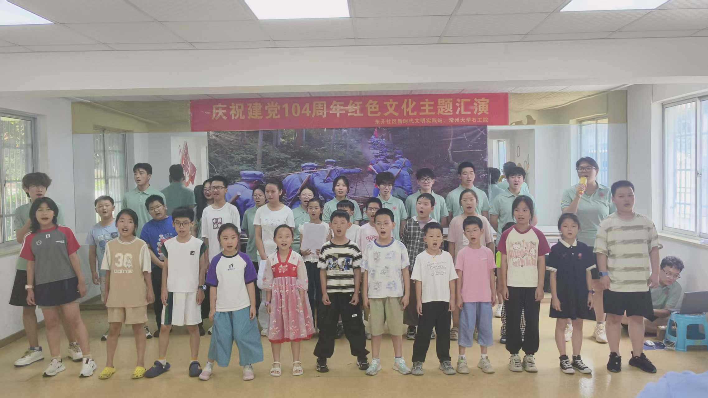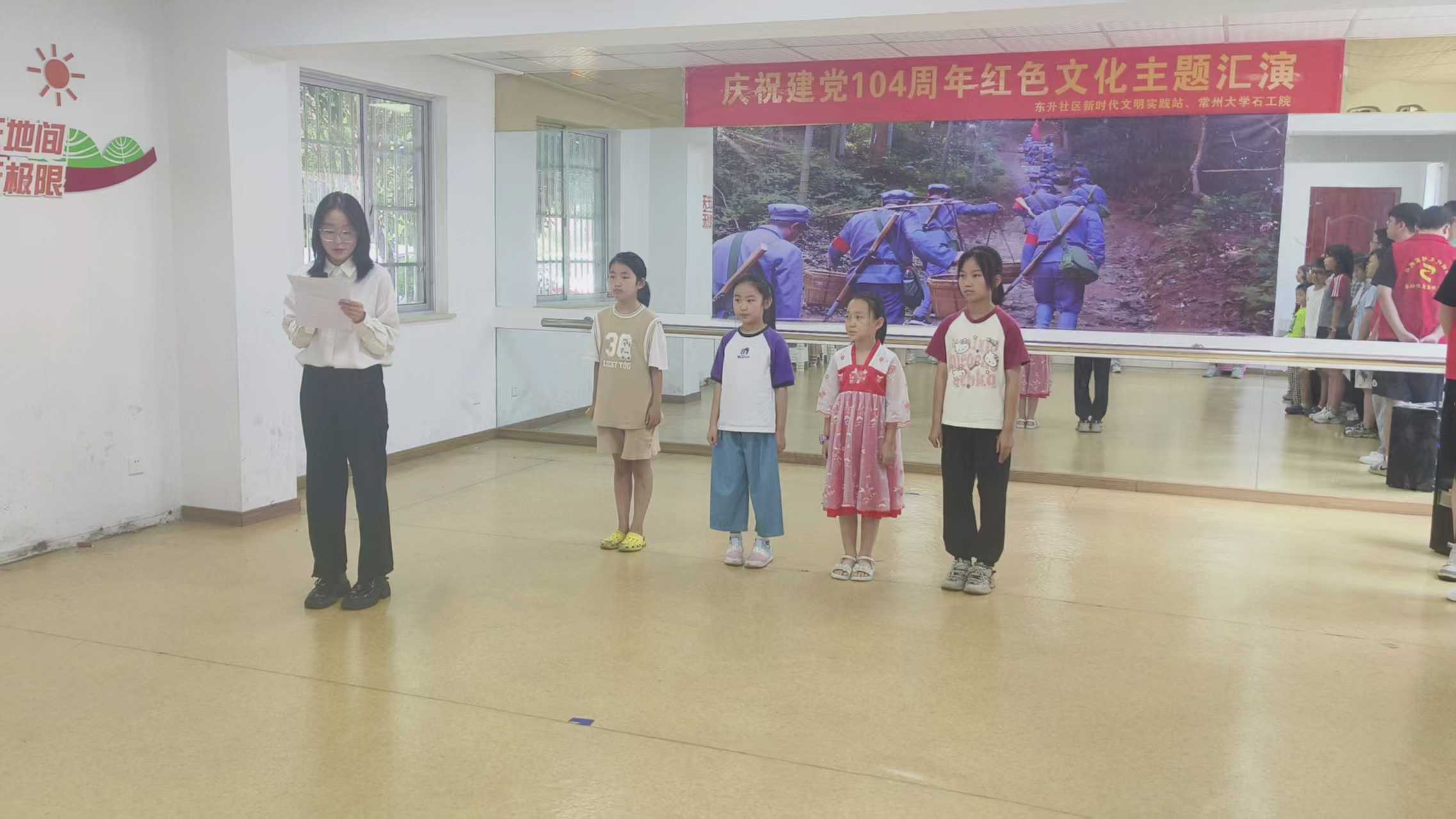 次日,東升社區(qū)暑托班的教室又變成了紅色劇場。常州大學夏日螢火志愿團隊精心策劃的紅色文化匯演溫情上演,以孩子們喜聞樂見的形式解讀信仰,傳遞力量。