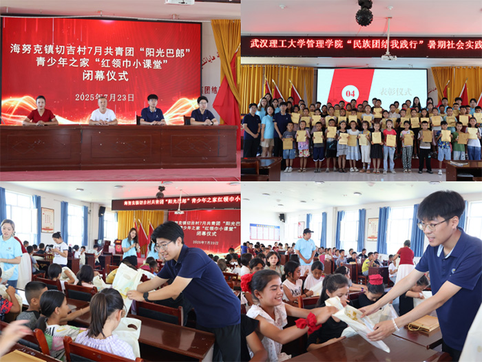 7月23日上午,武漢理工大學管理學院“民族團結(jié)我踐行”紅領(lǐng)巾小課堂結(jié)課儀式在新疆伊犁切吉村順利舉行。以“推普助力促團結(jié),五育并舉潤童心”為宗旨,實踐隊系統(tǒng)籌劃、精心設計了涵蓋理論教學、課后輔導、實踐養(yǎng)成、文體活動、參觀調(diào)研為一體的課程體系,并將五育元素融入全程,在推廣普通話的同時,開展鑄牢中華民族共同體意識教育,有形有感有效地推動了各民族小朋友的交往交流交融,將“民族團結(jié)同心圓”畫在大家心中。
