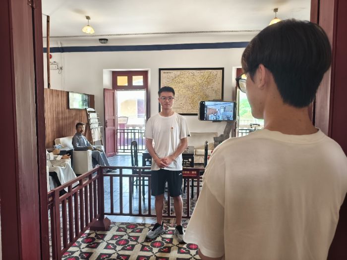 2025年7月24日,實(shí)踐團(tuán)隊(duì)抵達(dá)孫中山大元帥府紀(jì)念館開啟拍攝工作。從青磚黛瓦的門樓到莊嚴(yán)肅穆的展廳,從復(fù)原的大元帥辦公室到陳列著歷史文獻(xiàn)的展柜,隊(duì)員們用生動(dòng)鮮活的講述,將百年前在這里發(fā)生的護(hù)法運(yùn)動(dòng)、政權(quán)建設(shè)等重大歷史事件緩緩鋪展。
