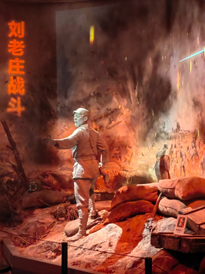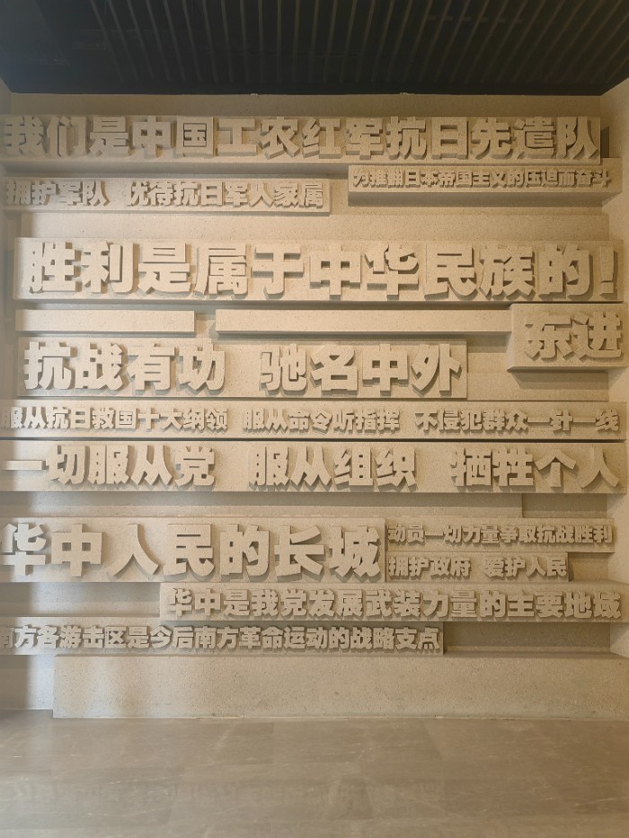 踏入新四軍紀念館,首先映入眼簾的是氣勢恢宏的新四軍群雕。戰(zhàn)士們身姿挺拔、神情堅毅,仿佛正奔赴抗日前線。群雕后方的序廳大屏,循環(huán)播放著新四軍戰(zhàn)斗紀實影像,槍炮聲、吶喊聲交織,瞬間將我拉回那個烽火連天的年代,內(nèi)心的崇敬與震撼油然而生,也讓我對接下來的參觀充滿期待。
