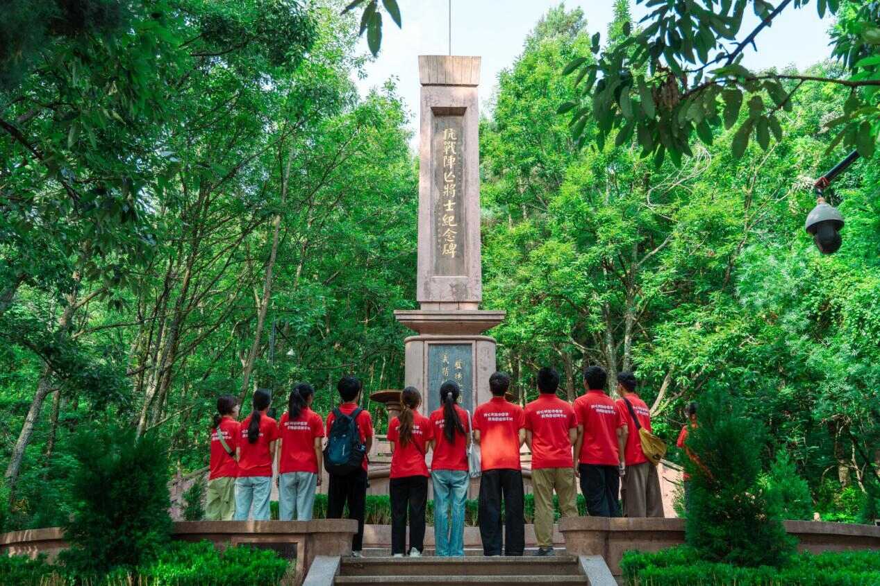 圖三:集體悼念華品章將軍走進大石板古村,隊員們漫步于古村街巷,自行探尋彝族古村的現(xiàn)代轉(zhuǎn)型密碼。大家觀察到,古村在發(fā)展旅游事業(yè)中,始終以彝族文化遺產(chǎn)保護為根基,傳統(tǒng)手工藝展示、民俗體驗等項目既吸引了各地游客,也讓彝族文化得到更廣泛傳播。這種發(fā)展模式不僅帶動了當?shù)亟?jīng)濟,更促進了各民族群眾在交流互動中增進了解、凝聚共識,成為民族團結(jié)的生動實踐。