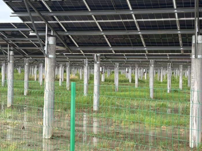 隨后,隊(duì)員們來到閘上村農(nóng)光互補(bǔ)發(fā)電基地進(jìn)行考察。專家提到,光伏板下目前種植了草等喜陰植物,用于政府支援給農(nóng)戶的羊的養(yǎng)殖。這些植物在光伏板遮擋形成的散射光環(huán)境中生長(zhǎng)態(tài)勢(shì)良好,不僅避開了強(qiáng)光灼傷風(fēng)險(xiǎn),光伏板表面凝結(jié)的露水還能為作物根系提供穩(wěn)定濕度,形成天然 “小氣候”。農(nóng)光互補(bǔ)的核心不僅是資源的疊加利用,更是用技術(shù)重構(gòu)了人與自然的相處模式。當(dāng)陽(yáng)光既成為電能的來源,又化作作物的養(yǎng)分,鄉(xiāng)村振興便有了最可持續(xù)的動(dòng)力。