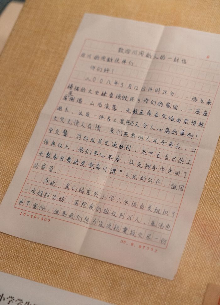 圖為柏崖頭小學(xué)學(xué)生寫的捐款信