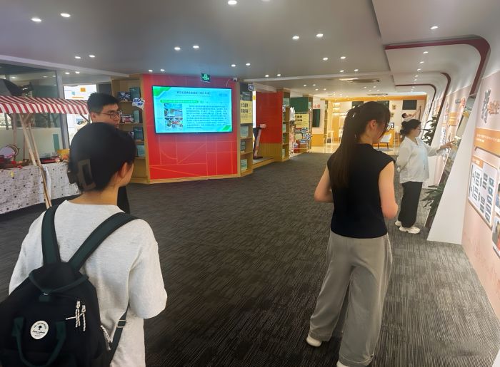 圖為實踐團(tuán)成員觀看上城區(qū)助聯(lián)體宣傳片。余汶思攝