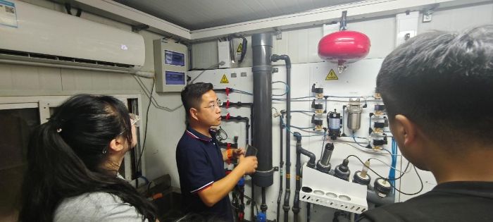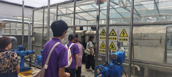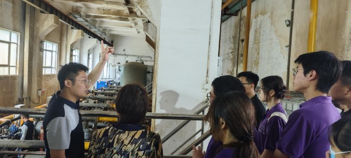 在整體安全告知和功能介紹結(jié)束后,孫科長根據(jù)污水凈化處理的全流程,帶領大家一步步見證“惡臭”變“清泉”的過程,首先從雜質(zhì)過濾層面,實踐隊成員走進雜質(zhì)過濾池,詳細觀看過濾機器是如何將各類污水進行初步過濾的,親眼看到雜質(zhì)是如何被提取,也清晰感受到雜質(zhì)處理的不易,在同學們已經(jīng)感受到過濾完成的時候,據(jù)孫科長介紹:“后續(xù)還有至少5道工序繼續(xù)處理雜質(zhì)。”,這個復雜且有序的過程引起了一眾師生在日常用水中的反思。