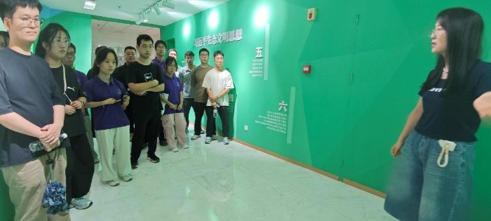 實踐隊首先參觀了環(huán)保歷程展,系統(tǒng)了解了我國生態(tài)文明建設,特別是習近平生態(tài)文明思想指引下的歷史性成就。展區(qū)以西安市為例,展示了顯著治理成效:2015至2024年,全市優(yōu)良天數(shù)從188天增至283天,PM2.5濃度從80降至45微克/立方米,渭河西安段水質(zhì)由劣Ⅴ類提升至Ⅲ類,秦嶺北麓生態(tài)修復超2000公頃。隊員們深刻理解了生態(tài)文明建設的深遠意義。在“公民十條”宣傳區(qū),隊員們學習如何將綠色低碳理念融入日常生活,并通過互動體驗掌握了實用環(huán)保知識。有同學感慨道:“環(huán)保不僅是理念,更是一套可操作的行為規(guī)范。隨手關燈、綠色出行、垃圾分類,這些小事積累起來就是環(huán)保大事。”