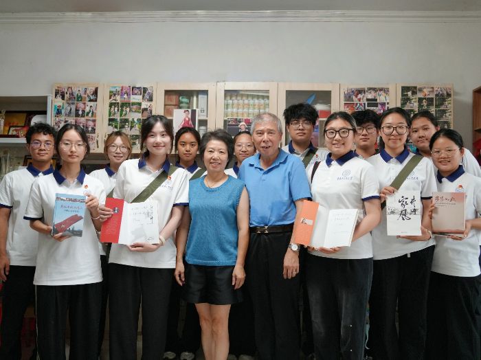 (圖為實踐團(tuán)成員與余寶平老師及其妻子陳平梅老師合影。時曉萌 供圖)