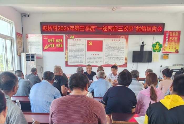 圖為趙海軍書記召開2024第三季度“一述兩評三議事”村情報告會