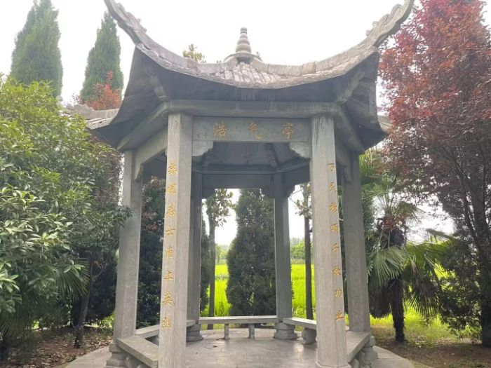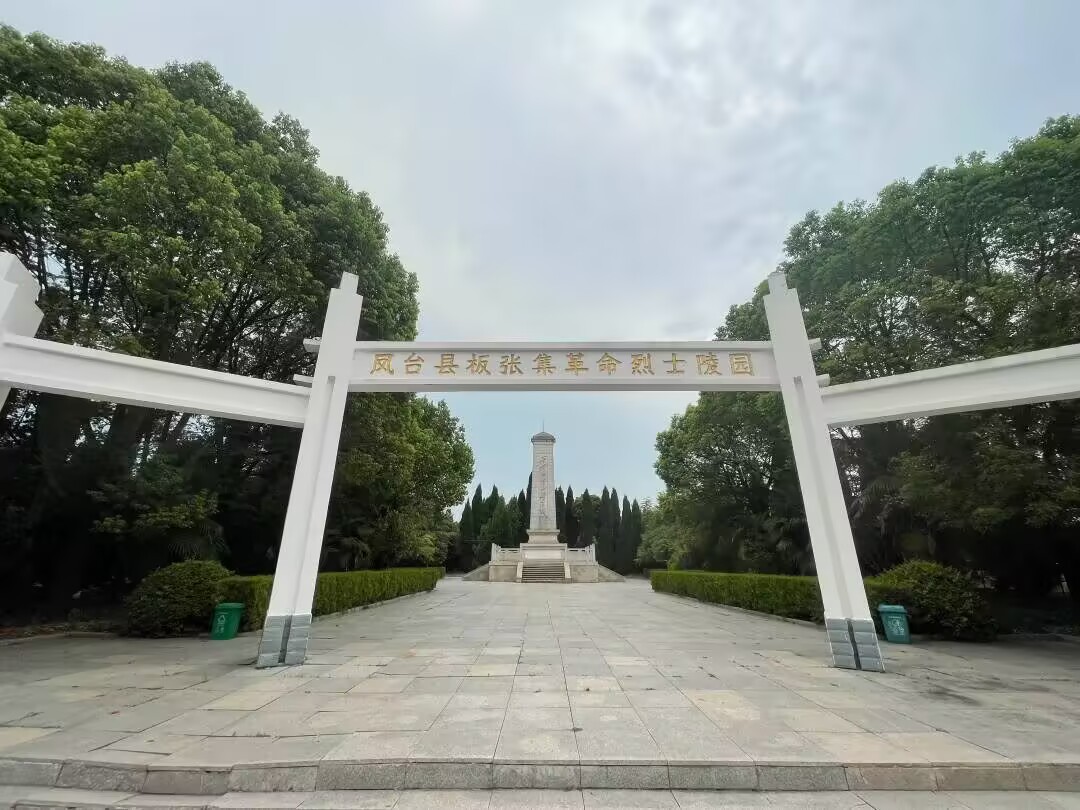 陵園入口,“鳳臺縣板張集革命烈士陵園”的白色牌坊在陽光下熠熠生輝。簡潔的建筑線條,承載著厚重的歷史分量,“革命烈士陵園”幾個大字,瞬間將人拉回那個熱血抗爭的年代。穿過牌坊,筆直的石板路延伸向遠方,兩側(cè)綠樹成蔭,蒼勁松柏如忠誠衛(wèi)士,守護著陵園的寧靜與莊嚴。成員們放緩腳步,生怕驚擾沉睡的英靈,而腳下石板縫隙中鉆出的新綠,恰似這片土地上紅色精神的生生不息,即便歷經(jīng)滄桑,仍蓬勃生長。