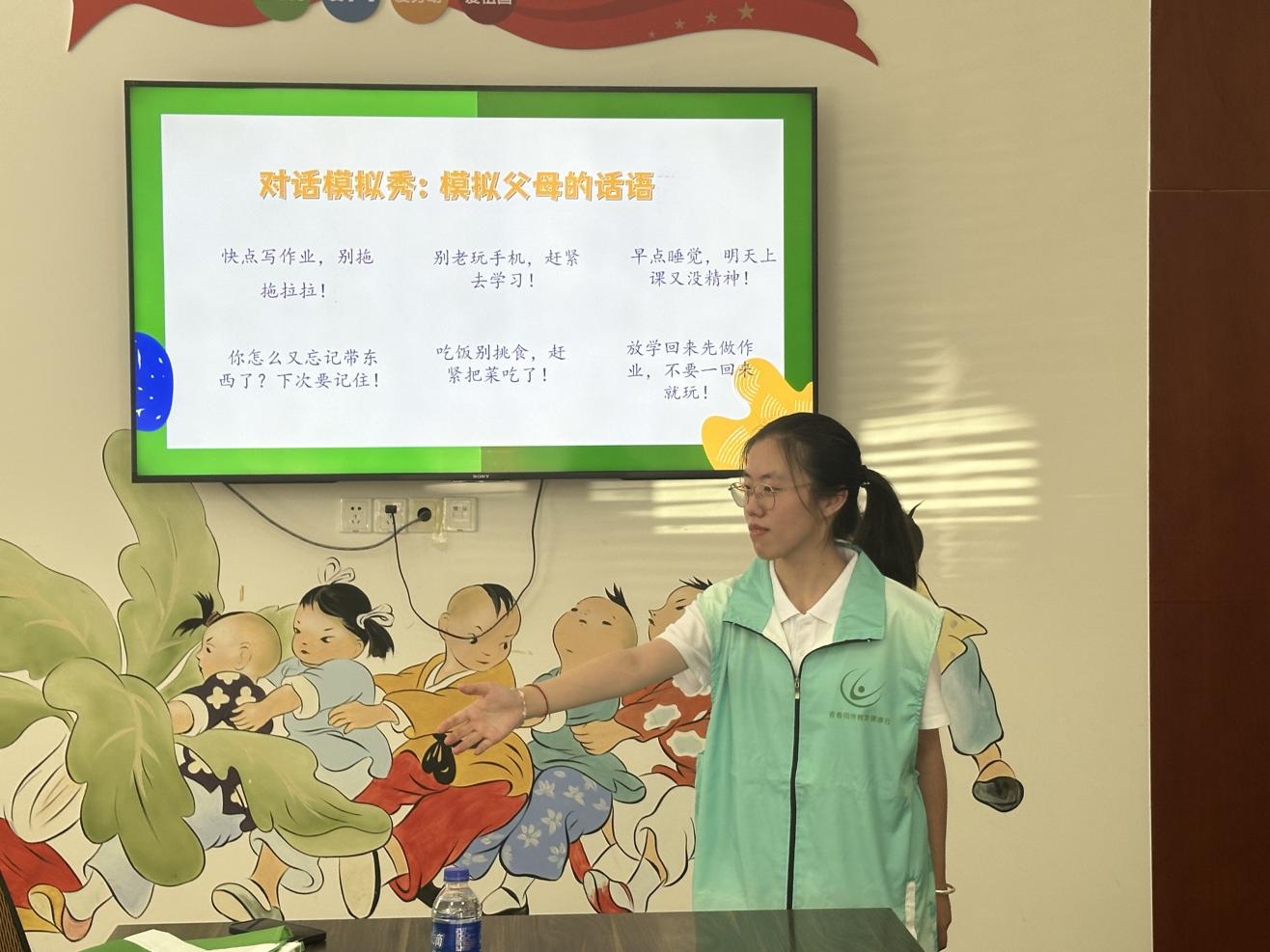課堂無縫轉(zhuǎn)入親子關(guān)系主題。針對成長中常見的溝通壁壘,志愿者精心設(shè)計(jì)互動環(huán)節(jié)。在"角色互換"模擬環(huán)節(jié)中,孩子們戴上志愿者準(zhǔn)備的"家長徽章",用稚嫩卻認(rèn)真的語氣模仿起父母的日常叮囑。"作業(yè)寫完了才能看電視哦"、"多吃蔬菜才能長高高",這些平日里聽?wèi)T了的嘮叨,此刻從孩子們口中說出,引得在場家長會心一笑。一位扎著馬尾辮的小姑娘模仿得尤為傳神,她皺著眉頭,學(xué)著媽媽的口吻說:"都說了多少次了,玩完玩具要收好!"話音剛落,自己先忍不住笑倒在椅子上。通過這樣生動有趣的模擬,孩子們第一次真切地體會到,那些曾經(jīng)覺得"煩人"的管教話語背后,其實(shí)都藏著父母滿滿的關(guān)愛。