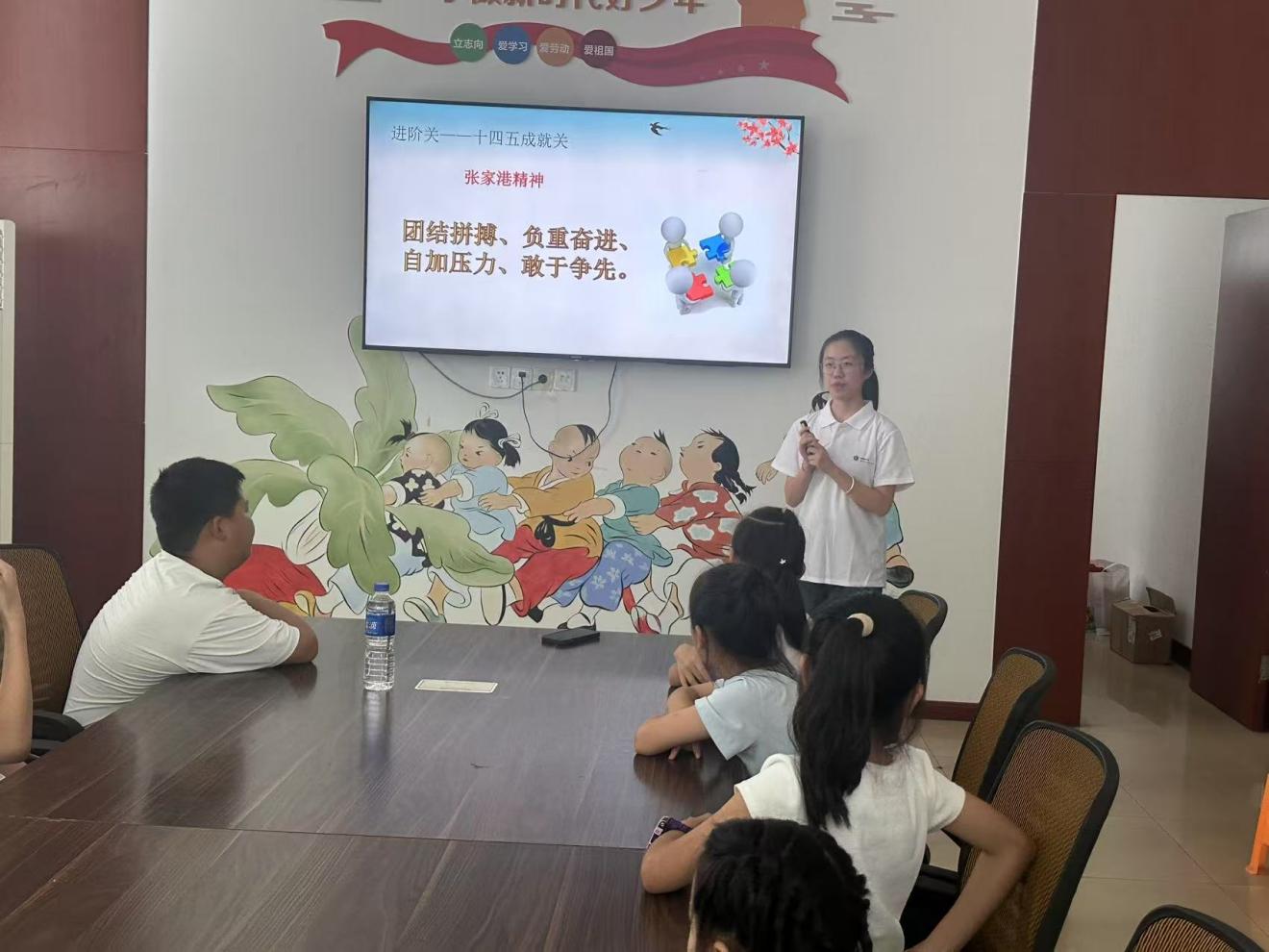在方言課堂的"紅色故事會"環(huán)節(jié),志愿者深情講述了張家港精神的時代內(nèi)涵。通過《一把鐵鍬改變一座城》的生動事例,孩子們了解到"團(tuán)結(jié)拼搏、負(fù)重奮進(jìn)、自加壓力、敢于爭先"的張家港精神如何從江邊小城孕育而生。當(dāng)屏幕上出現(xiàn)張家港從蘆葦灘到現(xiàn)代化港城的對比照片時,孩子們發(fā)出陣陣驚嘆。"原來我們張家港人這么了不起!"一位小男孩驕傲地說道。志愿者還特別設(shè)計(jì)了"精神傳承卡"互動,讓孩子們寫下自己理解的張家港精神,不少孩子認(rèn)真地寫下"要像建設(shè)港城的前輩一樣不怕困難"。這些質(zhì)樸的文字,正是紅色基因在新時代少年心中生根發(fā)芽的最好見證。