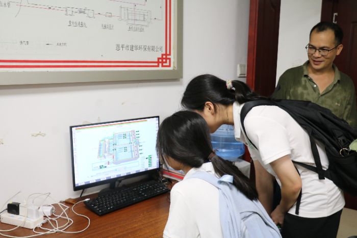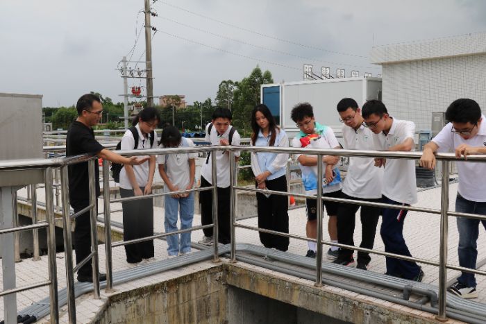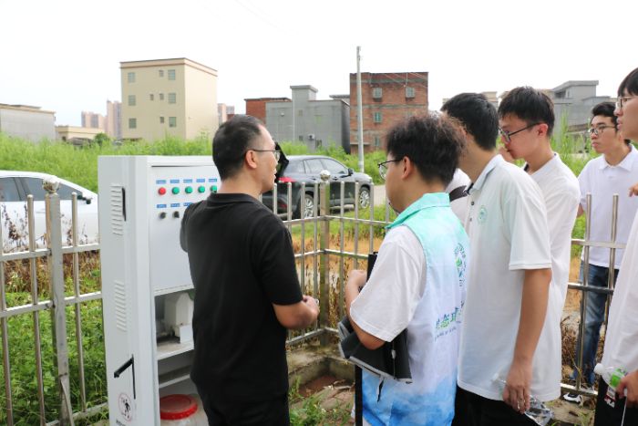 隨后,突擊隊前往恩平市潤遠環(huán)保有限公司城區(qū)污水處理廠與農(nóng)村污水處理站參觀,在廠長何競超的介紹下,隊員們了解了污水處理的全部流程,對比分析了城區(qū)智能中央控制平臺的實時監(jiān)測系統(tǒng)、龐大處理構(gòu)筑物群的高效運轉(zhuǎn)和農(nóng)村污水處理的特色運營模式,跨越“課堂理論”與“產(chǎn)業(yè)實踐”的鴻溝。同時,通過規(guī)范采集當?shù)睾拥浪畼?,將河道原水與污水處理廠尾水比對分析,用科學數(shù)據(jù)評估治理成效,深化專業(yè)實踐,校地聯(lián)合破解“農(nóng)村環(huán)境治理難”的困境。