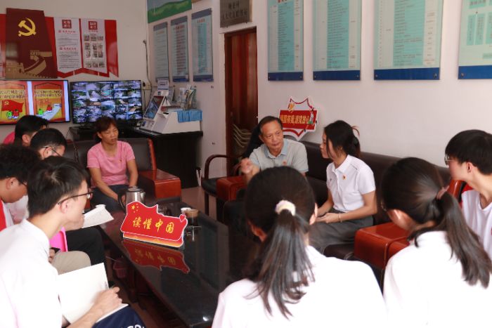 在圣堂鎮(zhèn)塘龍村黨群服務中心,突擊隊與村委會支部書記吳素霞交談,了解當?shù)赜⑿凼论E和革命精神,同時開展面對面“五老精神”對話活動,與“五老”代表——當?shù)乩辖處煛⒗闲iL、老黨員唐儒贊深入對話。唐儒贊始終牢記“為黨育人、為國育才”的初心使命,秉持“學高為師、身正為范”的教育理念。他以其近40年深耕基層教育的經(jīng)歷囑托大學生們“堅守初心、勇于擔當”,讓隊員們深刻理解“五老精神”與鄉(xiāng)村振興的內(nèi)在關(guān)聯(lián),凝聚起“老中青”協(xié)同的力量。