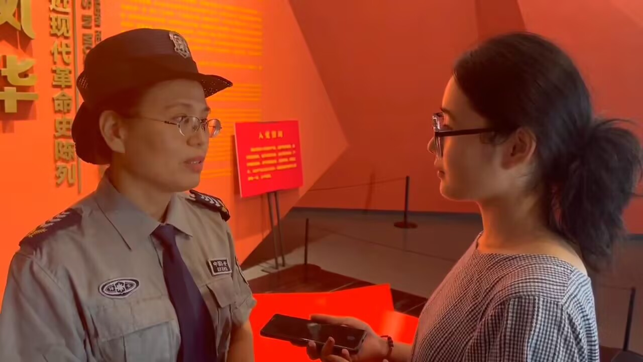 在我們沉浸在革命斗爭的解說時,有一位身姿挺拔的工作人員引起了我們的注意。隨著我們近距離的交流與采訪后得知,這位“不同尋常”工作人員居然是一位革命先烈的后代。