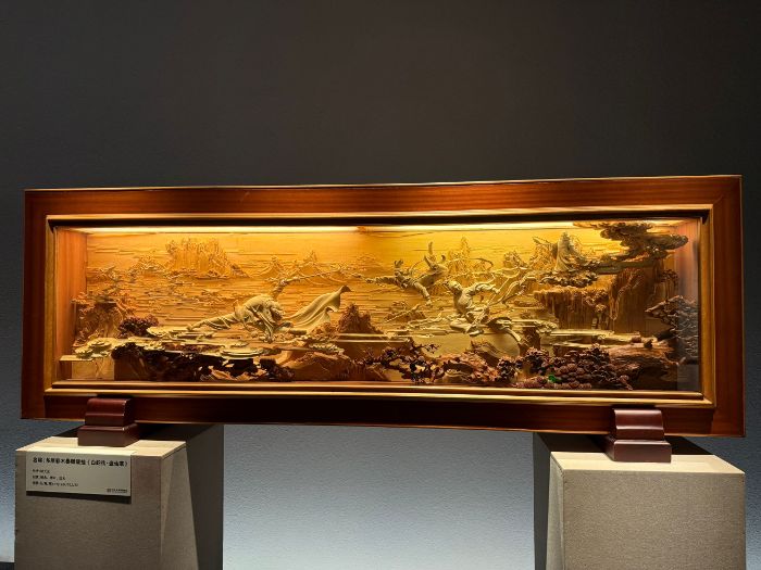 圖為木雕手工藝作品展示二。程馨儀 攝。