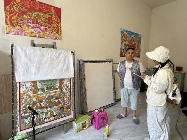 村黨支部書記雜桑當周向?qū)嵺`隊透露關(guān)鍵信息:57名土族、藏族黨員構(gòu)成村莊治理核心。通過組織“六月會”等民俗活動、將“民族團結(jié)”主題融入唐卡創(chuàng)作。“黨員帶頭畫‘紅色唐卡’,古老技藝就有了凝聚人心的新使命。”隊員石可琢在訪談筆記中寫道。