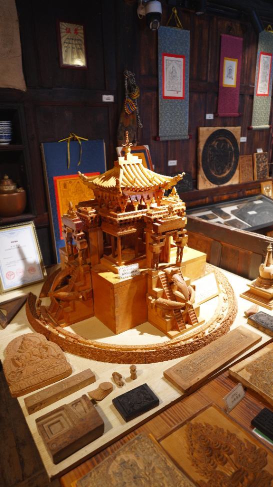 在省級非遺傳承人多杰的木雕工作室,隊員們被一件特殊作品吸引:藏族祥瑞圖騰環(huán)繞著漢字的“福”。“我們這行講究守正創(chuàng)新。”多杰撫摸著木雕紋路說,“文化交融才能讓傳統(tǒng)活下去。”這種自覺的共同體意識,正是郭麻日村作為多民族聚居地的底色。
