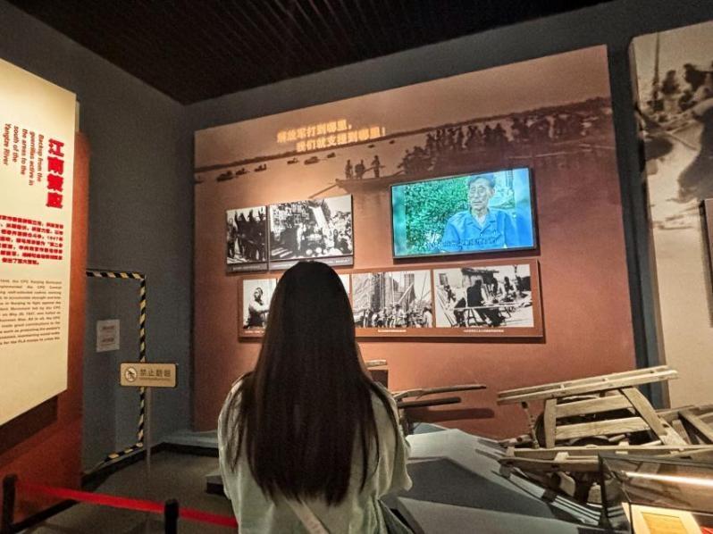 史料陳列:觸摸軍民同心的熱血溫度“解放軍打到哪里,我們就支援到哪里”這句標(biāo)語在渡江勝利紀(jì)念館的展墻上如同一團(tuán)跳動的火焰格外醒目,剛勁有力的字跡里仿佛還能聽見當(dāng)年軍民齊聲吶喊的回響。實(shí)踐團(tuán)隊(duì)的成員們駐足凝視影像屏幕與泛黃史料,仿佛瞬間被拉回了那個戰(zhàn)火紛飛卻熱血沸騰的年代。屏幕里閃過的畫面中,百姓的面容質(zhì)樸得像腳下的土地,黝黑的臉龐上刻著歲月的溝壑,卻擋不住眼神里的光亮——那是對解放軍的信任,對勝利的渴望,更是“軍民一心”四個字最生動的注解。這些平凡的身影,用最實(shí)在的行動詮釋著“共赴勝利”的勇氣,他們的眼神穿越時空,與駐足觀看的團(tuán)隊(duì)成員們相遇,將那份跨越七十余載的熱血溫度,一點(diǎn)點(diǎn)傳遞到每個人的心底,讓人真切感受到,渡江戰(zhàn)役的勝利,不僅是槍林彈雨中的沖鋒陷陣,更是千萬百姓用肩膀扛起的民心所向。