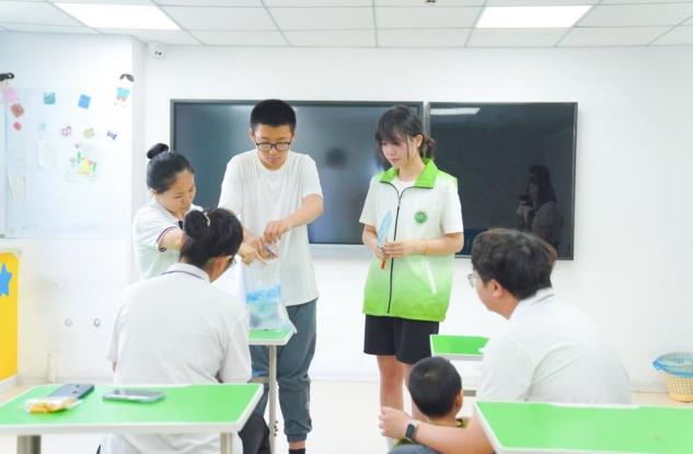 午后陽(yáng)光溫柔,體育游戲課在更開(kāi)闊的空間鋪展。面對(duì)這些觸覺(jué)敏感、指令理解存在障礙的低齡孩子,沐含和玥曄化身智慧的“游戲建筑師”。她們布置的“彩虹隧道”柔軟而包容,色彩明麗如童話入口,吸引著孩子們好奇的觸碰;她們吹起的“音樂(lè)泡泡”輕盈飛舞,在追逐與觸碰的嬉戲中,無(wú)意間鍛煉著孩子們的手眼協(xié)調(diào)與空間感知。最令人動(dòng)容的,是那個(gè)曾對(duì)任何肢體接觸都本能退縮的小女孩——在志愿者耐心而持續(xù)的“輕輕引導(dǎo)”下,她最終緊緊抓住了玥曄伸出的手指,在“開(kāi)火車”游戲中蹣跚前行,臉上綻放出從未有過(guò)的、如雛菊初放般羞澀卻明亮的笑容。這游戲場(chǎng)上的小小一步,何嘗不是她內(nèi)心世界朝向廣闊天地勇敢邁出的一大步?身體在游戲中舒展,信任在互動(dòng)中萌芽,每一次笨拙卻真切的嘗試,都是孤獨(dú)城堡上松動(dòng)的一磚一瓦。