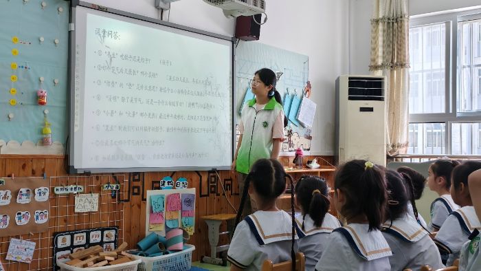 6.24 上午開展成語故事課(懸梁刺股)與國學(xué)文化課(二十四節(jié)氣)。故事成語課先用小游戲來引起小朋友們的興趣,讓小朋友們說出四字成語有哪些,再難度升級,讓學(xué)生思考有關(guān)讀書的成語有哪些,再以一個生動有趣的視頻,引出本節(jié)課的主題“懸梁刺股”。小朋友們能夠積極參與課堂提問和游戲,能夠復(fù)述大概內(nèi)容,并且理解 “懸梁刺股”的故事和其蘊(yùn)含意義。國學(xué)文化課通過向?qū)W生提問“節(jié)氣與天氣是一樣的嗎?”,引發(fā)學(xué)生思考節(jié)氣與天氣的關(guān)系,意識到天氣與我們的生活息息相關(guān),而節(jié)氣是比天氣復(fù)雜、豐富的知識,進(jìn)而開始課堂。課上,老師與學(xué)生互動,讓學(xué)生回答二十四節(jié)氣中“驚蟄”、“芒種”、“夏至”、“冬至”等典型節(jié)氣的特征,以及“小暑”“大暑”誰更熱?“小寒”“大寒”誰更冷?并說出自己喜歡的節(jié)氣的天氣特征和原因,從而提高課堂效率,最后學(xué)生認(rèn)識了二十四節(jié)氣歌,并知道二十四節(jié)氣在生活,農(nóng)業(yè)等地方的作用,能夠說出自己喜歡的節(jié)氣、特征、原因,以及其它部分節(jié)氣特征。