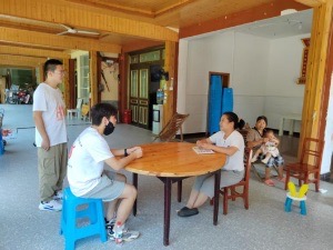 圖為成員在訪談民宿老板。王思琪 供圖