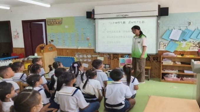 隨后,通過(guò)做卡片游戲引領(lǐng)同學(xué)們總結(jié)出不同風(fēng)格的二十四節(jié)氣,主要是春分、夏至、秋分、冬至。同學(xué)們逐漸意識(shí)到要觀察生活,將所學(xué)的知識(shí)運(yùn)用到生活中,養(yǎng)成知行合一的好習(xí)慣。最后,給同學(xué)們留下作業(yè),“今天我們認(rèn)識(shí)了春分、夏至、秋分、冬至四個(gè)節(jié)氣,它們會(huì)提醒我們天氣變化,同學(xué)們回家可以和爸爸媽媽一起觀察:今天是什么季節(jié)?小樹(shù)和小動(dòng)物有什么變化?”。