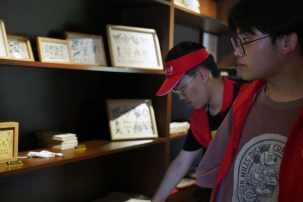 納西一韻,共譜新篇 參觀結(jié)束,同學(xué)們踏入東巴文化體驗(yàn)館,據(jù)體驗(yàn)館工作人員所說(shuō),館中大部分文創(chuàng)基本都出于非遺傳承人和樹(shù)昆老師之手。同學(xué)們深入了解了關(guān)于東巴鼓、東巴畫(huà)、東巴紙、東巴舞等的前世與今生。他用最樸素的方式演繹著“傳承”的深意——不是把文化鎖進(jìn)博物館的櫥窗,而是讓它流淌在人們的心中、躍動(dòng)在歡快的舞步里、融入柴米油鹽的日常。就像白水臺(tái)千年涌動(dòng)的清泉,東巴文化也在這樣的薪火相傳中,生生不息,綿延不絕。