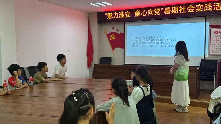 暑期參與“綠芽七彩行·童心筑夢(mèng)齊”實(shí)踐團(tuán)隊(duì)淮安片區(qū)線下宣講實(shí)踐,既是一次知識(shí)傳播的歷練,更是一場(chǎng)對(duì)教書育人的深度體會(huì)。從課程籌備到現(xiàn)場(chǎng)講授,每一環(huán)都緊密相扣,在這一過程中,我對(duì)“科技”和“文明禮儀”有了更深刻的理解。同時(shí),我也在團(tuán)隊(duì)協(xié)作中收獲了成長(zhǎng)與感動(dòng)。