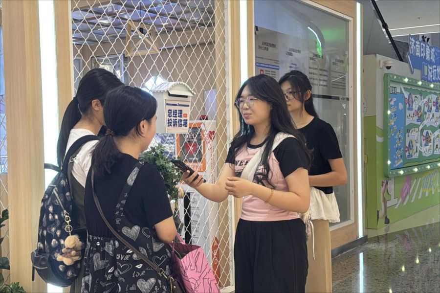 宣講結(jié)束后,團(tuán)隊(duì)于當(dāng)日下午前往聚隆廣場,以印象城為主要調(diào)研地點(diǎn),開啟街頭采訪之旅。8月11日上午,團(tuán)隊(duì)又先后前往濟(jì)南恒隆廣場、世貿(mào)廣場繼續(xù)采訪,下午則奔赴濟(jì)南萬象城,繼續(xù)圍繞“品牌溢價(jià)”主題展開調(diào)研。采訪中,團(tuán)隊(duì)圍繞“品牌溢價(jià)”這一主題,向過往市民提出了關(guān)于購買泡泡瑪特等價(jià)格較高商品的問題,包括購買動(dòng)機(jī)、對價(jià)格的感受以及對溢價(jià)原因的看法等。