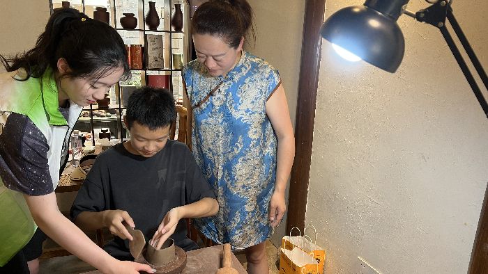 圖為孩子學(xué)習(xí)制陶技藝 姚雨欣供圖