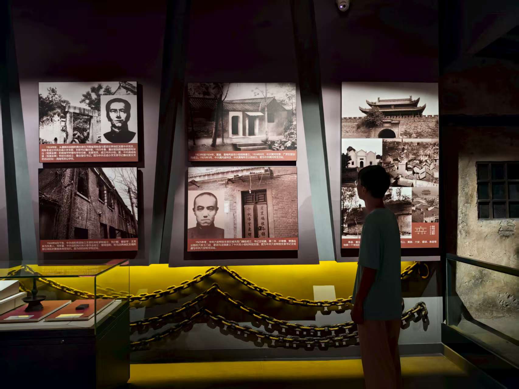 圖為志愿者正在觀看六安黨支部的建立