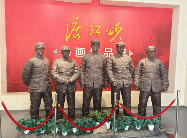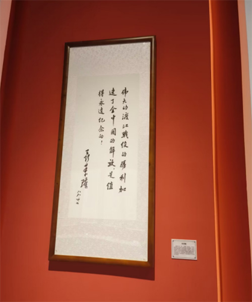 青松翠柏和藍天輝映下的渡江頌書畫展廳內,精心裝裱著百余幀融思想性,藝術性于一體的開國將帥題詞珍品,以此表達對渡江戰(zhàn)役勝利的偉大謳歌,贊美以及對光明未來的期盼敬仰。字里行間的溫度,讓“軍民魚水情”不再是抽象的概念。