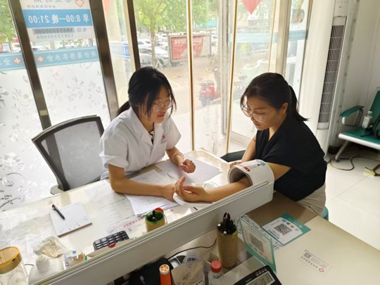 此次實踐活動以“豫北醫(yī)學(xué)院赴鄭州市科普宣講團(tuán)”為主題。同學(xué)們針對慢性病防治和急救知識兩大板塊進(jìn)行了詳細(xì)講解。在慢性病防治方面,她圍繞高血壓和糖尿病展開。對于高血壓,清晰講解正常血壓值(120/80)及危險信號(頭暈、胸悶) ,并以“少吃咸、多動腿,血壓高了找大夫”的口訣便于居民記憶;針對糖尿病,介紹常見癥狀(多飲多尿)與飲食禁忌(甜粥、果汁) ,還用真實案例警示“腳破趕緊治,拖久要截肢”。實踐過程中,學(xué)子們采用多樣化的方式確保知識有效傳遞。在金水李秀英診所,同學(xué)們不僅為前來就診的患者測量血壓,還結(jié)合實際病情進(jìn)行健康指導(dǎo)。如圖片中所示,一位同學(xué)正在專注地為患者測量血壓,耐心解答患者的疑問,將理論知識與實際醫(yī)療場景緊密結(jié)合。