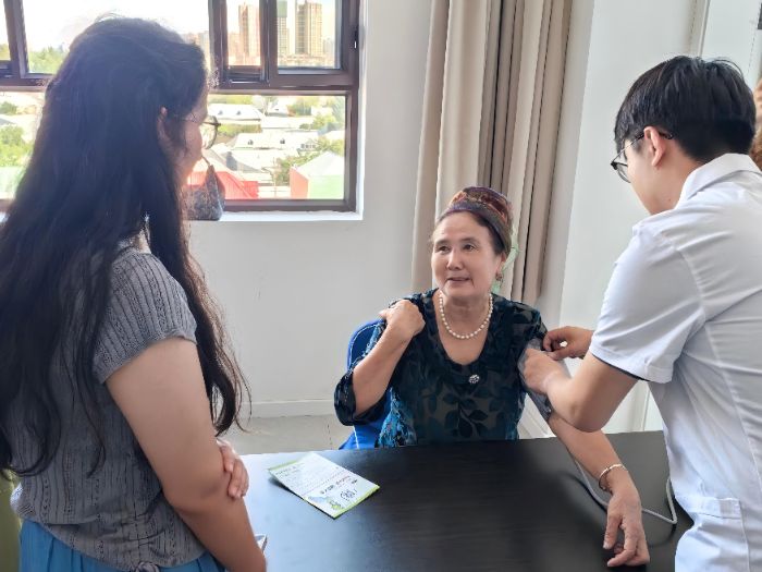 實踐隊首先來到伊寧市總醫(yī)院伊犁河路街道分院,與醫(yī)務人員研討公共衛(wèi)生政策落地和實地學習基層醫(yī)療體系,同時開展健康宣講與義診服務,推動健康知識入腦入心、落地生根。