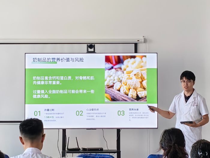 緊扣當?shù)鼐用耧嬍沉晳T,宣講會圍繞“奶類制品科學攝入”“熏制肉食風險管控”“主食纖維攝入強化”三大主題展開。隊員們分發(fā)精心設(shè)計的多語言宣講手冊(含漢語、維吾爾語、哈薩克語),并在維吾爾族同學的輔助翻譯下,系統(tǒng)科普傳統(tǒng)飲食中的科學健康理念。