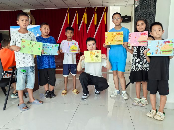 在伊寧市春風里社區(qū)“紅領(lǐng)巾小課堂”,團隊聚焦健康理念的早期培育,先向社區(qū)群眾科普健康飲食知識,隨后組織當?shù)貎和餐L制營養(yǎng)膳食手抄報。通過生動有趣的繪畫互動,隊員們引導孩子們在輕松氛圍中學習健康飲食知識,強化健康飲食觀念,助力養(yǎng)成良好生活方式,為全民健康素養(yǎng)提升播撒希望的種子。