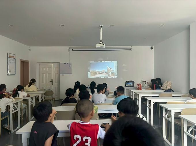 英語課堂則變身為充滿魔力的語言游樂場。漫長的暑期并未冷卻孩子們對知識的渴求。“單詞尋寶”引爆了全場的熱情。小小的活動室瞬間變成神秘的探險叢林。孩子們人手一張線索卡,像機敏的小偵探,貓著腰穿梭在桌椅的“森林”間。一個穿藍色T恤的小男孩屏住呼吸,小心翼翼地翻開桌墊一角,當“apple”的卡片赫然出現(xiàn)時,他興奮得小臉通紅,高高舉起卡片,雀躍地大喊:“我找到蘋果啦!”不遠處,另一個小女孩對著“zoo”的圖片恍然大悟,激動地拍著手:“動物園!好多動物!”每一次發(fā)現(xiàn)都伴隨著驚呼和純真的笑臉,那是探索未知、收獲新知最純粹的喜悅。