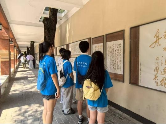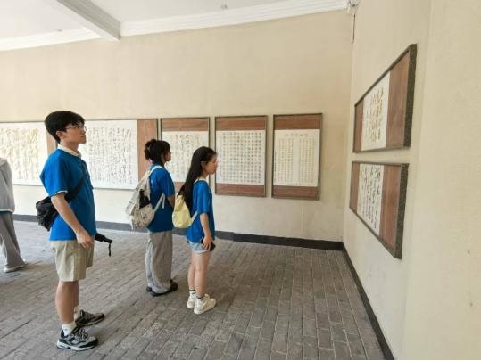 (圖為實踐隊員參觀毛澤東詩詞對聯(lián)書法藝術(shù)碑廊。通訊員 肖伯健 攝)