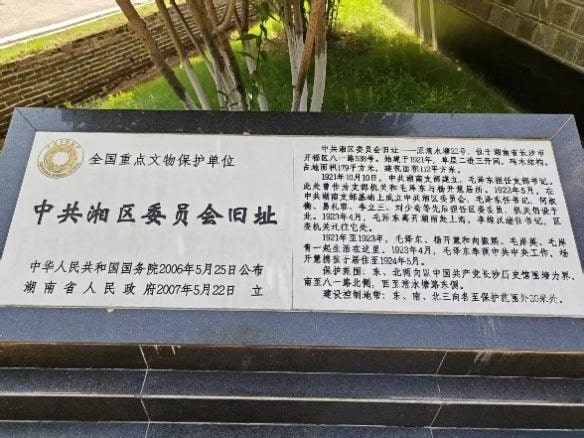 (圖為中共湘區(qū)委員會舊址暨毛澤東楊開慧故居石碑。通訊員 肖伯健 攝)