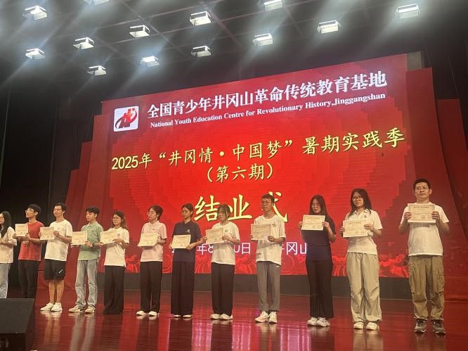8月11日晚,“哲學(xué)+”實踐團與其他高校實踐團隊齊聚報告廳,參與結(jié)業(yè)儀式。儀式莊重而熱烈,團中央井岡山教育基地領(lǐng)導(dǎo)為各大實踐團隊頒發(fā)結(jié)業(yè)證書,表彰深入調(diào)研、勤學(xué)善思的卓越表現(xiàn)。離別之際,王一成老師向?qū)嵺`團成員們作總結(jié)致辭。他高度肯定了全體成員在追尋歷史脈絡(luò)、探究理論源流過程中展現(xiàn)的求索精神與學(xué)術(shù)熱忱,并勉勵團隊成員將井岡山淬煉的思考與收獲內(nèi)化于心、外化于行,持續(xù)深化對馬克思主義中國化時代化規(guī)律的理解,勇?lián)碚搫?chuàng)新的時代使命。