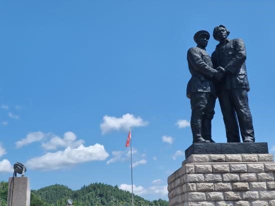 一程山路,一曲贊歌。實踐團順抵達朱毛會師廣場。巍峨紀念碑前,師生肅立。矗立于廣場中央的朱毛會師雕像,以蒼勁雄渾的線條,銘刻下朱毛會師歷史場景——兩位偉人巍然屹立,目光如炬,穿透歷史煙云,雙手緊握,傳遞著信念與力量,訴說著革命理想的磅礴。“這一幕,不僅是往昔崢嶸的永恒定格,更是一部以磐石書寫的宣言,昭示著道路選擇的正確;這一幕,早已超越了物理的聯(lián)結(jié),化為永不褪色的精神印記——團結(jié)、奮斗與必勝的信念。”實踐團成員王詩語如是說。熱風(fēng)獵獵,紅旗之下,團隊成員齊誦團隊宣言,聲震林樾,團隊成員的信仰亦更加堅定。